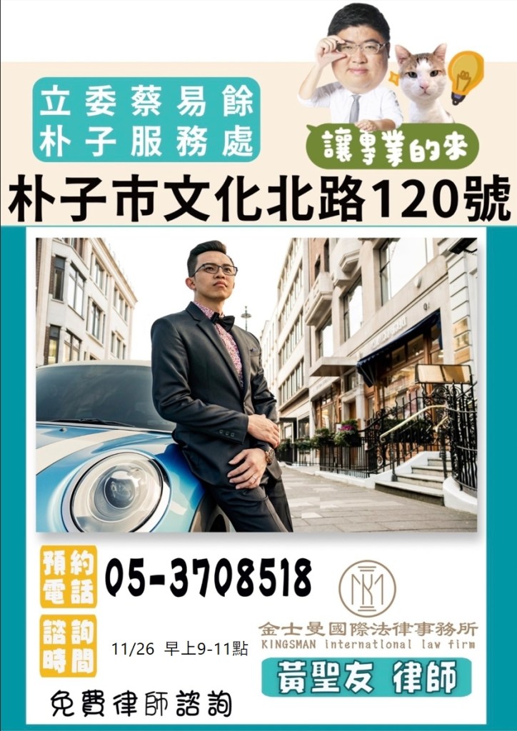 #蔡易餘 #家己人 #海區 #法律諮詢 #朴子服務處律師諮詢時間 #黃聖友律師