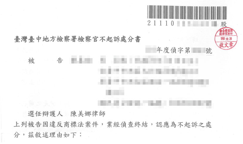 #智財法律師 #商標法 #違反商標法不起訴 #陳美娜律師
