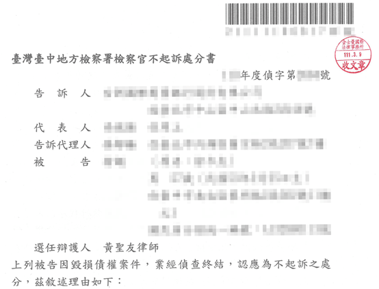 #刑事律師 #毀損債權 #不起訴案例 #黃聖友律師 #陳美娜律師
