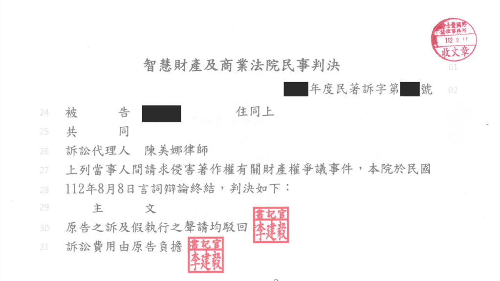 #勝訴案例 #智慧財產權 #智財案件 #黃聖友律師 #陳美娜律師 #台中律師推薦