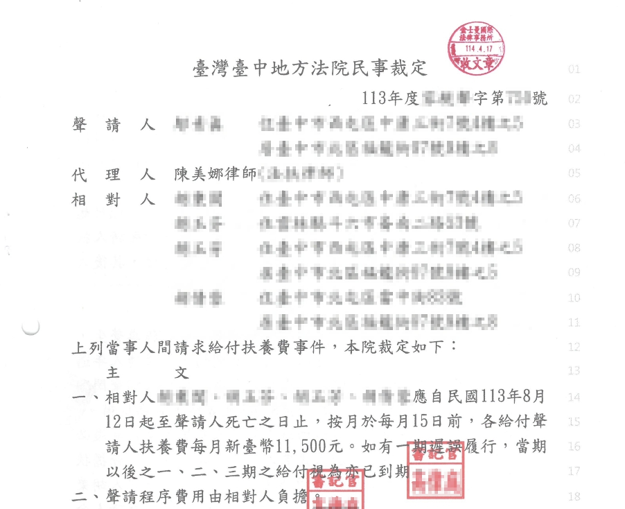 #勝訴案例 #民事律師 #扶養義務 #扶養費 #陳美娜律師 #台中律師推薦
