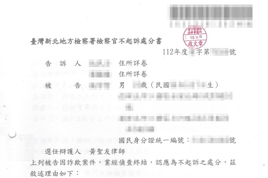 #刑事律師 #詐欺 #詐欺幫助 #洗錢防制法 #黃聖友律師 #勝訴案例 #台中律師推薦
