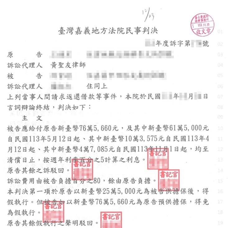 #民事律師 #返還借款 #消費借貸 #借貸契約 #黃聖友律師 #陳美娜律師 #台中律師推薦